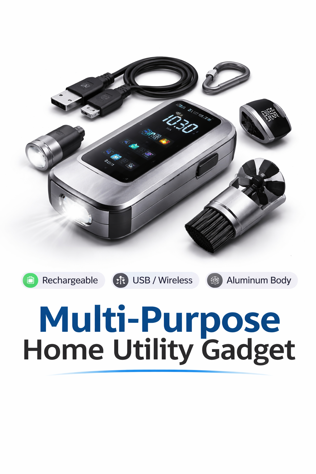 The Multi-Purpose Home Utility Gadget is a modern device designed for multiple household uses. Built with durable aluminum alloy and powered by rechargeable battery technology, it ensures long-lasting performance and portability.