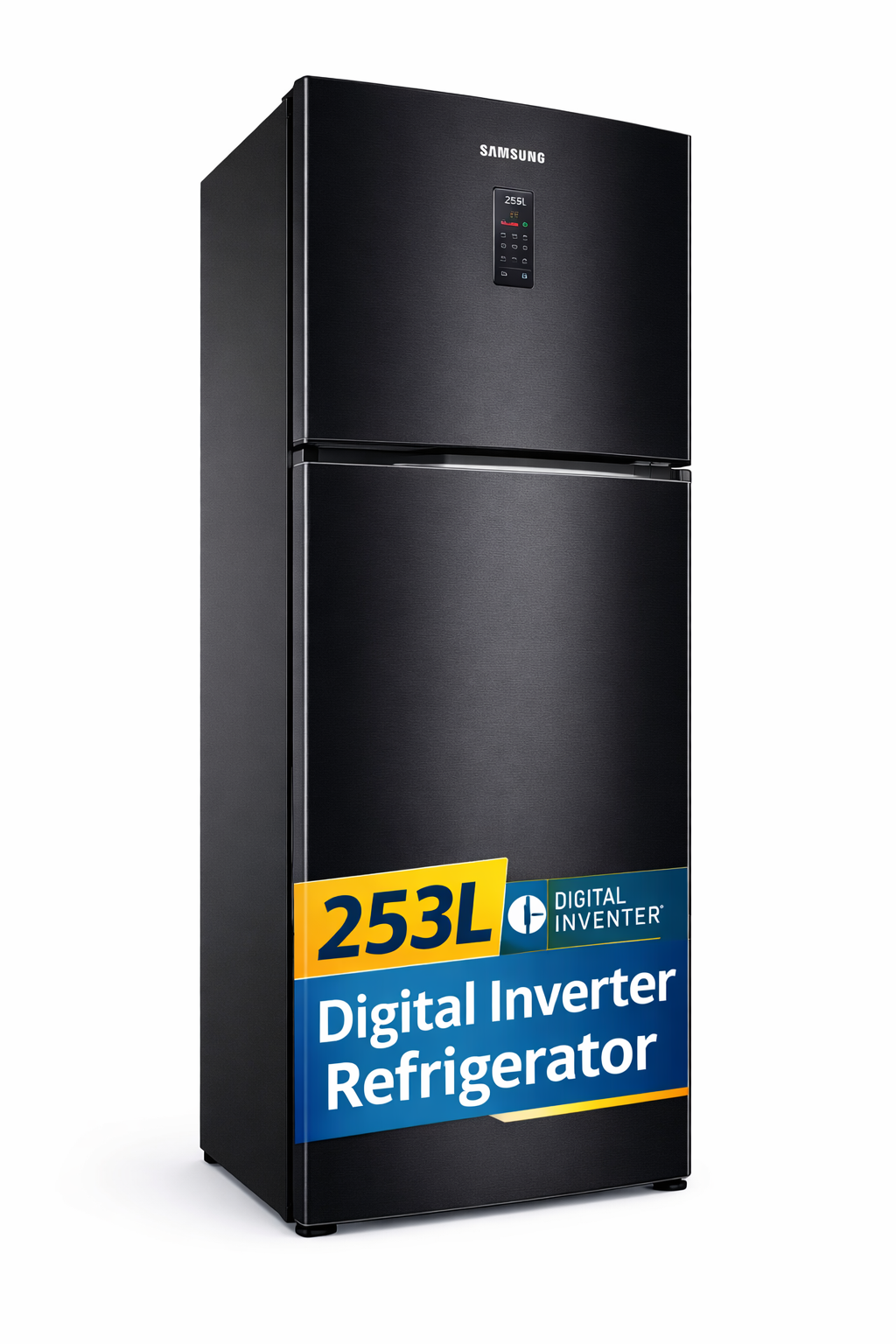 Samsung 253L refrigerator features digital inverter technology ensuring quiet operation and energy efficiency with long lasting cooling performance.