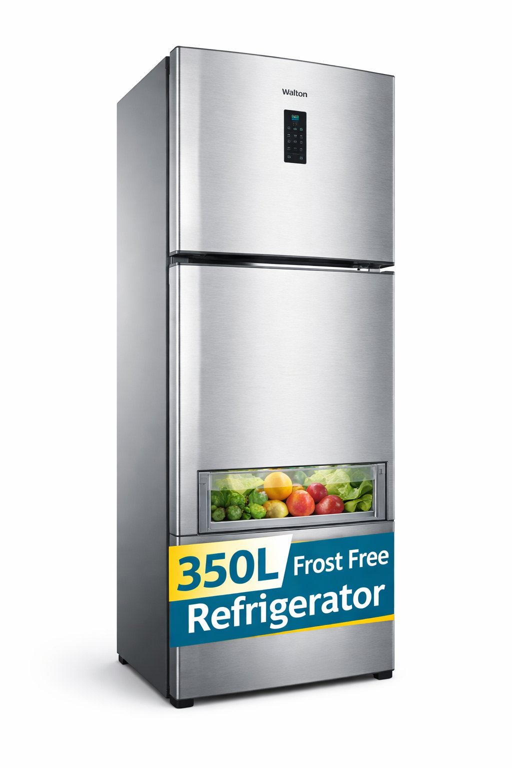 Walton 350L Frost Free Refrigerator offers powerful cooling with energy efficient inverter compressor. It features spacious storage, fast cooling technology and modern design suitable for large families.